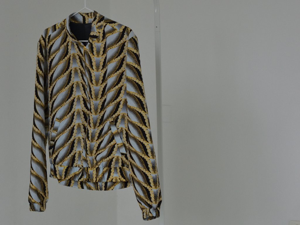 Vrchní část bundy je ušitá z autentických afrických textilií, které dodávají každému kusu jedinečný charakter.