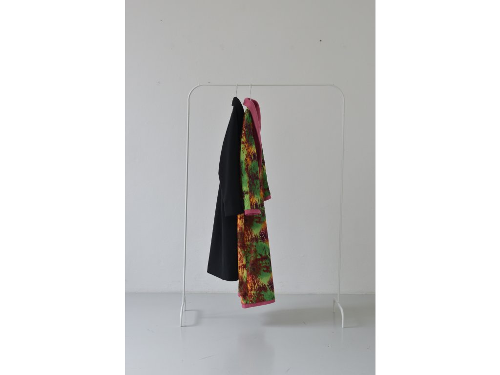 Kabát s africkou podšívkou v oversize střihu a raglánovými rukávy je originální kousek, který spojuje volnost a osobitý styl.