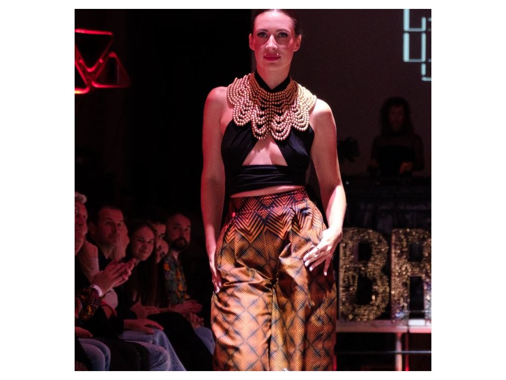 Kalhoty over s vysokým pasem ušité z originálních afrických látek.